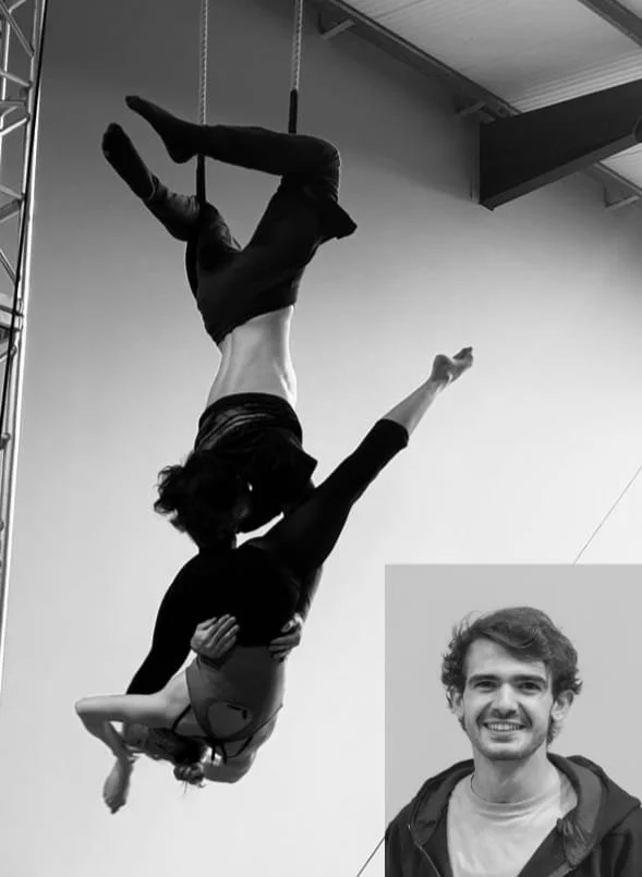Crash-landing into the circus world in 2022, he has never since been able to escape! Developing skills in teaching and performance, he has travelled across the world with a big top and performed at various festivals across the UK alongside his partner, Heidi.